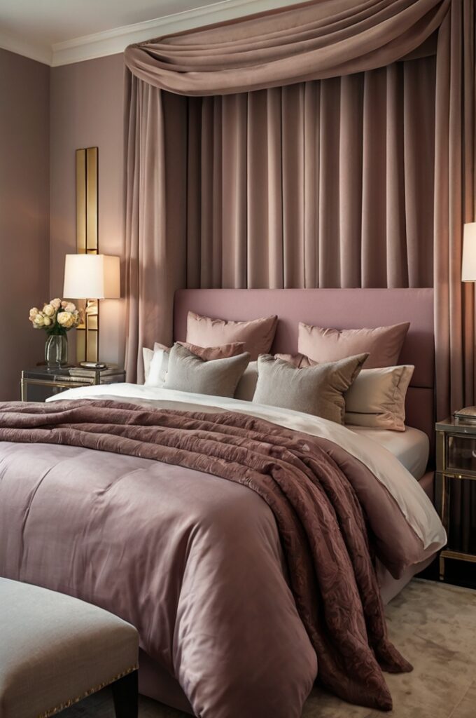 Add a soft mauve drape over your bed frame or canopy for a romantic, ethereal look that enhances both comfort and elegance.